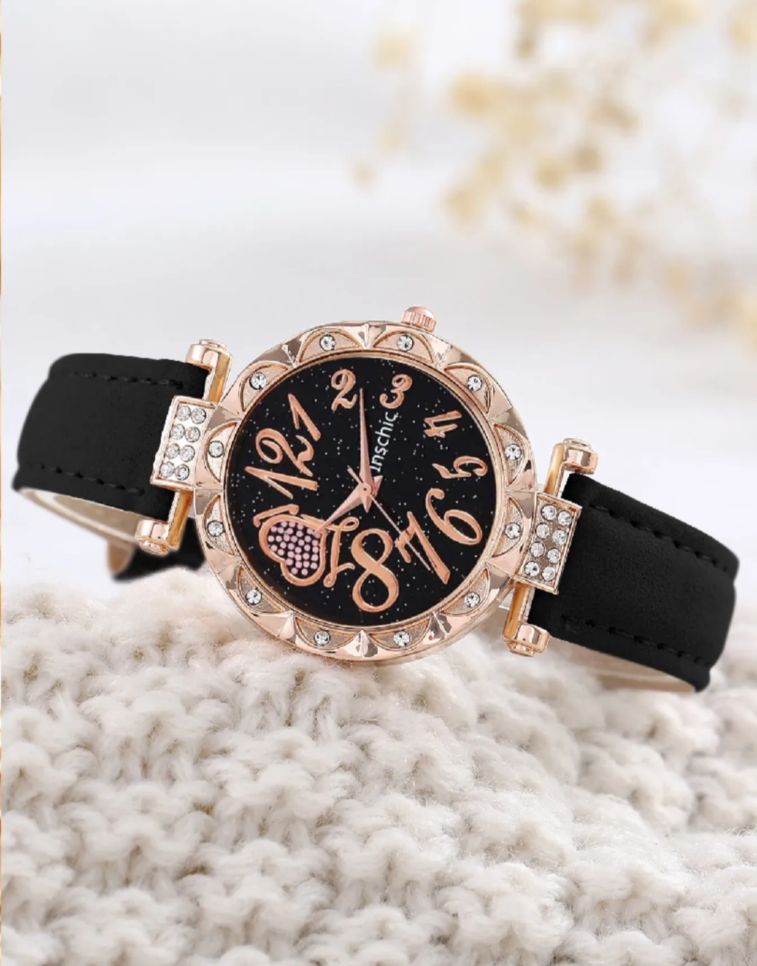 Luxury Love Rhinestone Jewelry Ladies Leather Strap Quartz Watch -লাক্সারি রাইনস্টোন লেডিস লেদার ওয়াচ